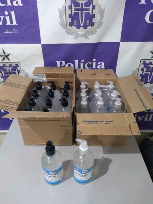 Em relação ao material apreendido, foram 22 frascos de álcool em gel e será solicitado autorização judicial para doação ao asilo de idosos do município, grupo vulnerável ao vírus.