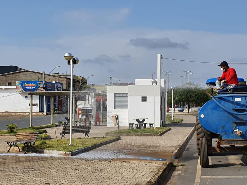 PREFEITURA REALIZA DESINFECÇÃO EM ESPAÇOS PÚBLICOS DURANTE FECHAMENTO TEMPORÁRIO DO COMÉRCIO