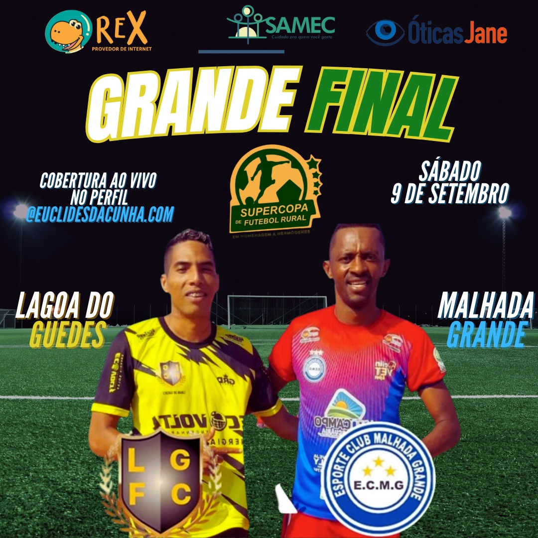 A grande decisão do time que será o grande campeão da Supercopa de Futebol Rural está batendo na porta. Neste Sábado 9, às 15 horas acontecerá na Lagoa do Guedes o jogo final entre os Lagoa do Guedes e Malhada Grande, com transmissão ao vivo do site @euclidesdacunha.com em seu perfil do Instagram.