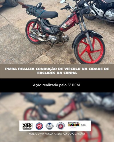 Diante da situação, o condutor e a motocicleta foram encaminhados à Delegacia de Polícia Civil de Euclides da Cunha, onde foram adotadas as medidas legais cabíveis.