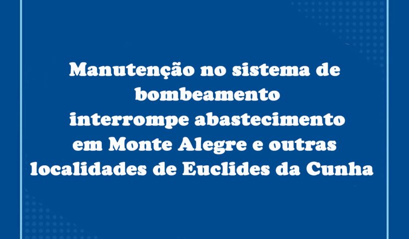 Retomada deve ocorrer na próxima sexta-feira (06) O abastecimento de água realizado através do sistema Monte Alegre, em Euclides da Cunha, foi afetado por causa…