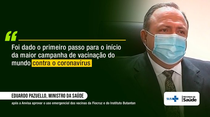 Ver mais Com vacinas aprovadas pela Anvisa, Ministério da Saúde inicia nesta segunda-feira o processo de distribuição pelo paísBahia está preparada para vacinar 5,08 milhões de pessoas até maio