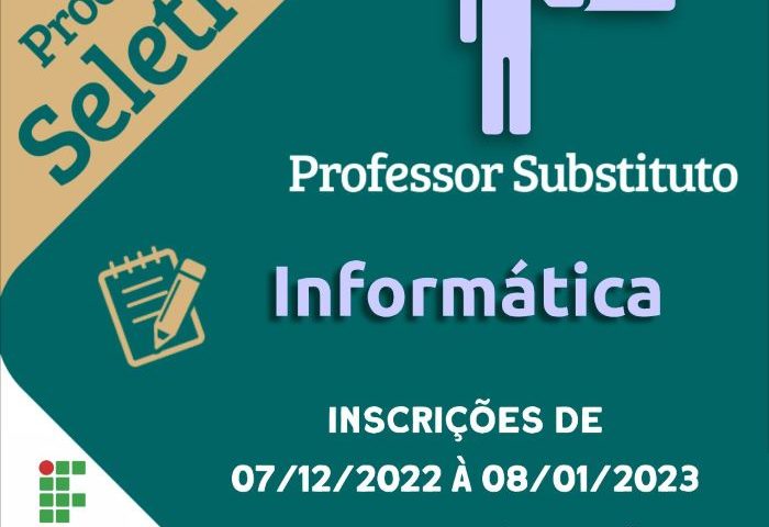 O Instituto Federal de Educação, Ciência e Tecnologia da Bahia (IFBA), abre processo seletivo para contratação de professor substitutivo de informática para a Instituição As…