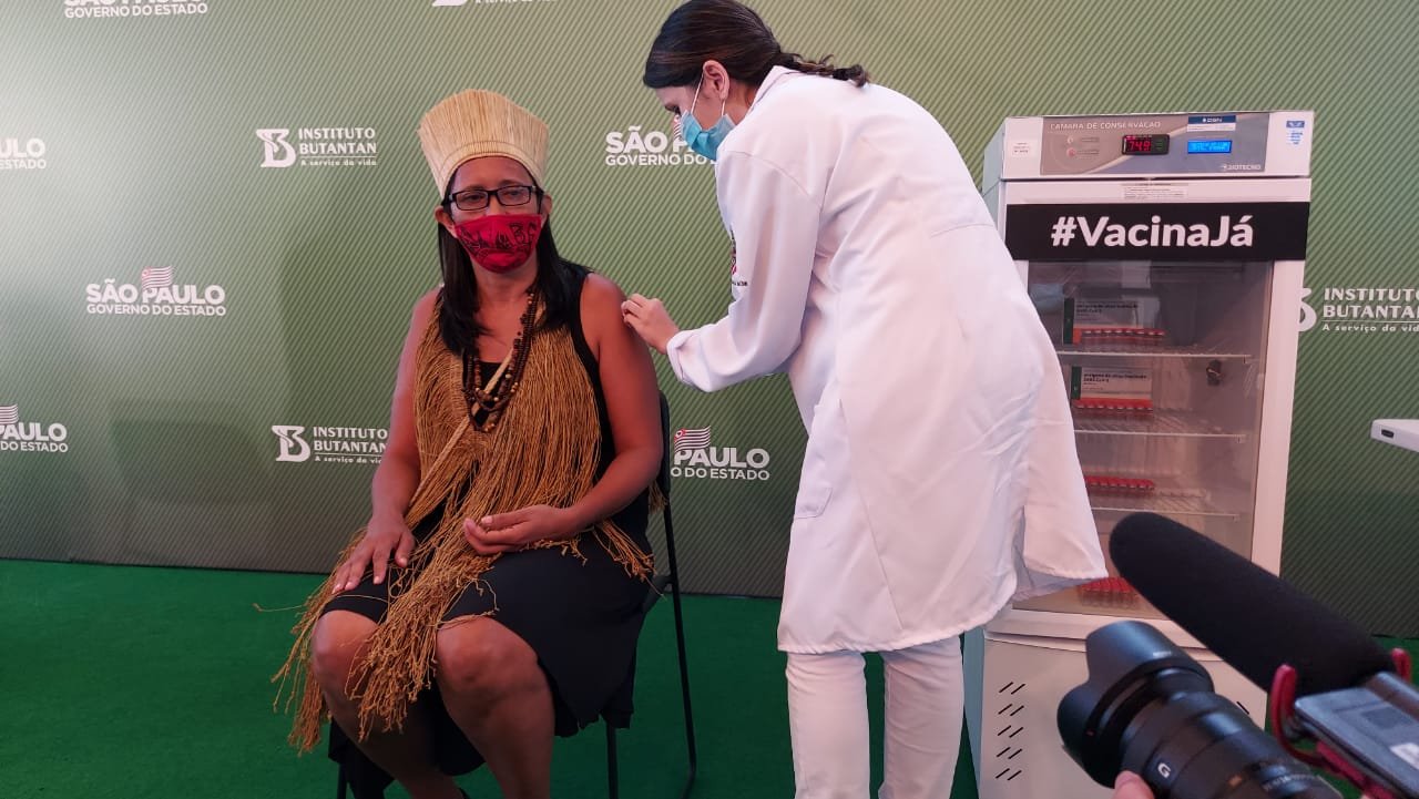 Vanusa Kaimbé, índia da tribo Kaimbé, que possui laços familiares aqui na aldeia do Massacará, município de Euclides da Cunha, é a primeira indígena a ser vacinada no Brasil contra o novo coronavírus (Covid-19). A vacinação ocorreu neste domingo, 15, dia em que a Anvisa (Agência Nacional de Vigilância Sanitária) aprovou duas vacinas para uso emergencial no Brasil.