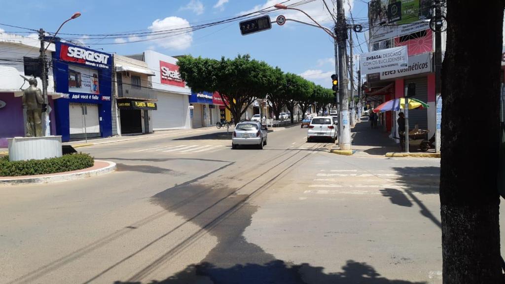 Durante esta segunda-feira (8) e terça-feira (9), somente os estabelecimentos comerciais como mercados, farmácias, postos de combustíveis e funerárias estão abertos devido às imposições do decreto estadual que proíbe a abertura dos demais estabelecimentos.
