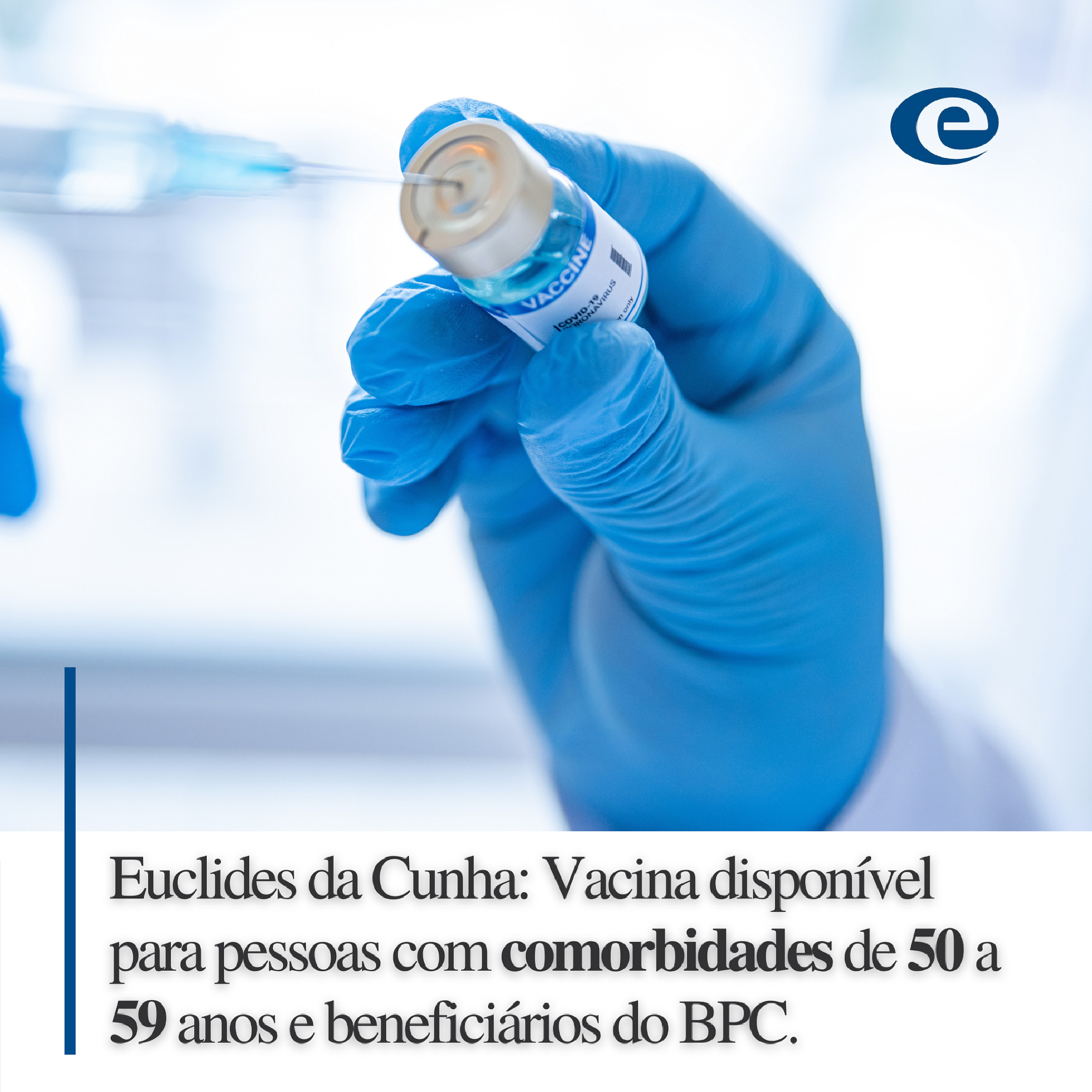 Nesta segunda-feira (10), pela manhã, pessoas com comorbidades listados na CIB e beneficiários do BPC com idade entre 50 e 59 anos, devem procurar o PSF que está vinculado, para receber a primeira dose da vacina contra a COVID-19 em Euclides da Cunha – BA.