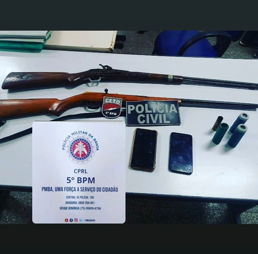 De acordo com o informativo policial, o proprietário da residência em que o autuado estava escondido, também foi preso em flagrante portando duas espingardas de fabricação artesanal calibre indefinido.