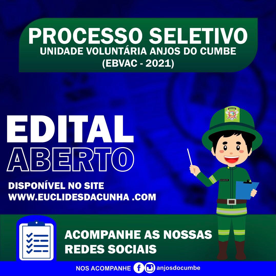 Já estão abertas as inscrições para o exame de seleção para estágio de bombeiros voluntários para atuarem na Equipe Anjos do Cumbe. Serão oferecidas 10 vagas para candidatos do sexo masculino ou sexo feminino.