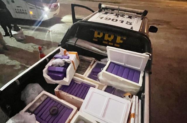 Na tarde da terça-feira (4), no km 429 da BR-116, a Polícia Rodoviária Federal (PRF) realizou uma grande apreensão de drogas em um ônibus, cuja a empresa não foi divulgada, que saiu de São Paulo com destino para Euclides da Cunha.