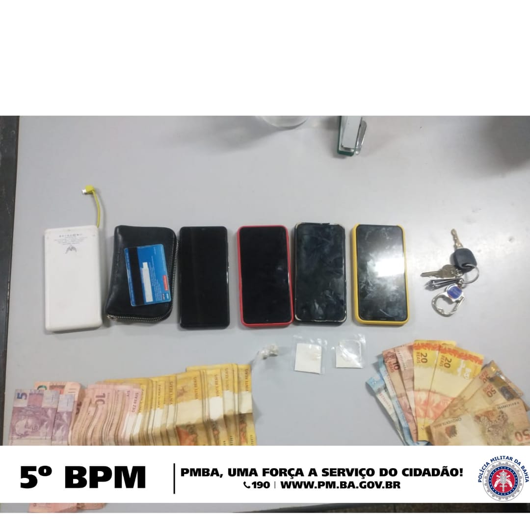 Imediatamente, os policias deram a ordem para que o condutor parasse o veículo e logo após foi realizada foi realizada a revista nos ocupantes e no veículo, onde encontraram três papelotes de cocaína, R$ 1.590 em espécio e quatro Smartphones.