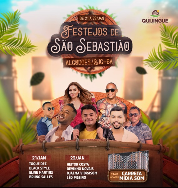 A prefeitura municipal de Quijingue tornou público na noite deste último domingo (7), a programação oficial dos Festejos de São Sebastião, em Algodões, prevista para acontecer nos dias 21 e 22 de janeiro.
