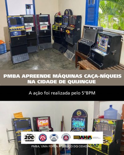 Nesta quinta-feira (08), durante rondas ostensivas no município de Quijingue, uma guarnição do 5º Batalhão da Polícia Militar (5º BPM) apreendeu máquinas caça-níqueis em diferentes pontos da cidade, após denúncias sobre a prática de jogos de azar em estabelecimentos comerciais.