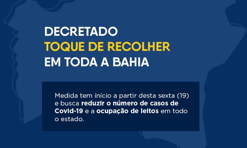 Ver mais Confira a lista dos municípios que terão toque de recolher a partir desta sextaCom 15 mil casos ativos de covid-19 na Bahia, governo decreta toque de recolher no estado