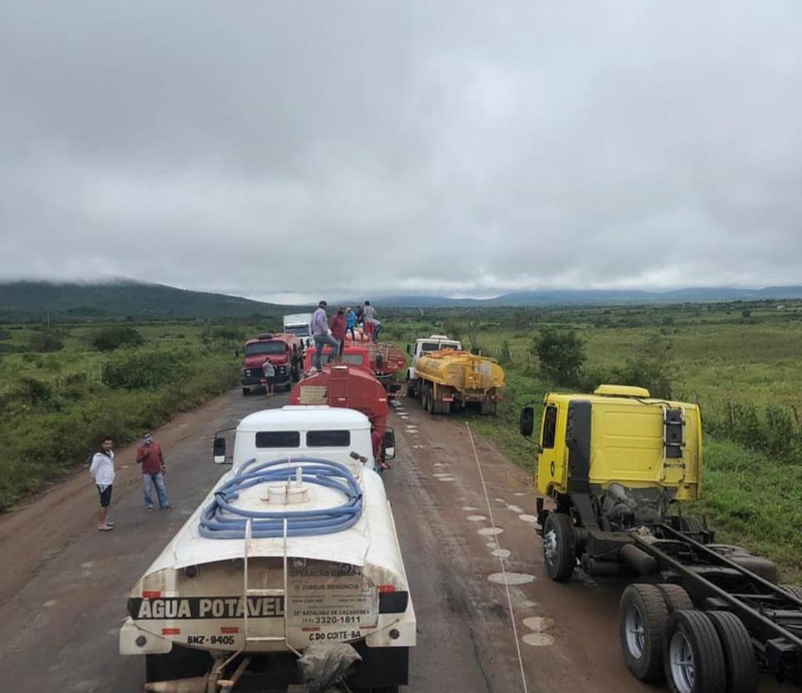 Conforme anunciado nesta terça-feira, 18, caminhoneiros realizam novo ato de protesto contra as péssimas condições da BA 220. A manifestação ocorreu no período da manhã desta quarta-feira, 19, na própria BA 220, onde caminhões-pipa e outros veículos foram enfileirados nos dois sentidos da rodovia, interditando-a.