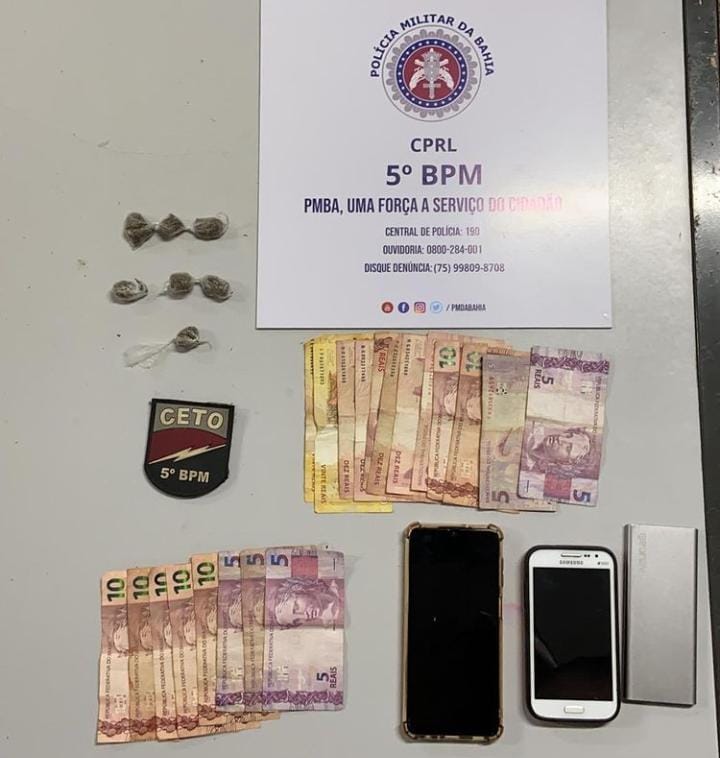 Durante realização de rondas ostensivas no entorno da Central Municipal de Abastecimento da cidade de Euclides da Cunha, Bahia, policiais militares da Companhia de Emprego Tático Operacional CETO) efetuaram a prisão de dois indivíduos que conduziam uma motocicleta e portavam uma quantidade de substância análoga à maconha, assim como dinheiro e smartphones.