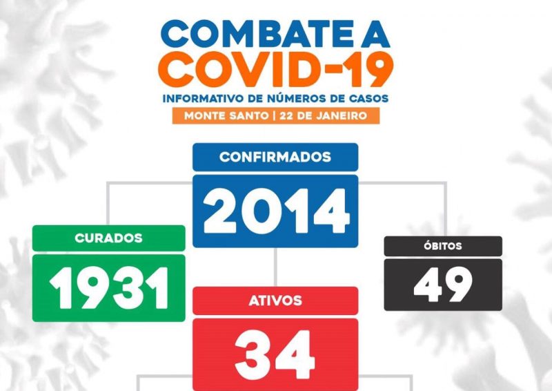 De acordo com o boletim mais recente, Monte Santo já confirmou 2.014 pessoas contaminadas pelo vírus chinês. Deste total, 1.931 estão recuperadas e 49 não resistiram à agressividade do vírus. Restam, ainda, 34 casos ativos, que estão em crescente neste ano de 2022.