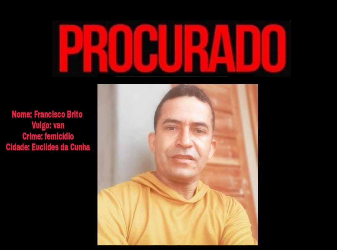 Apontado como autor de feminicídio ocorrido no último sábado (21) na cidade de Euclides da Cunha, Francisco Brito, conhecido como “Van”, está sendo procurado pela Justiça.