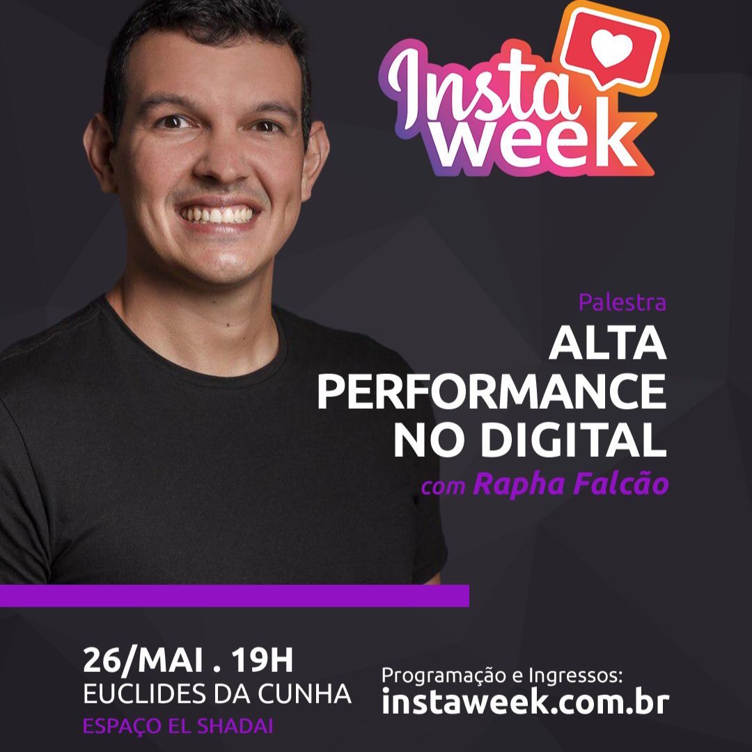 Fazendo parte da programação do Instaweek, evento de negócios relacionados ao Instagram, promovido pelo SEBRAE, a cidade de Euclides da Cunha terá a palestra Alta Performance no Digital, promovida pelo empreendedor de sucesso @raphafalcaof que acontecerá no dia 26 de maio às 19 horas, no espaço de eventos El Shaddai.