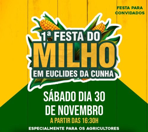 No próximo dia 30 de novembro (sábado), Euclides da Cunha será palco da Primeira Edição da Festa do Milho, um evento que celebra a importância econômica e social desse grão na região.