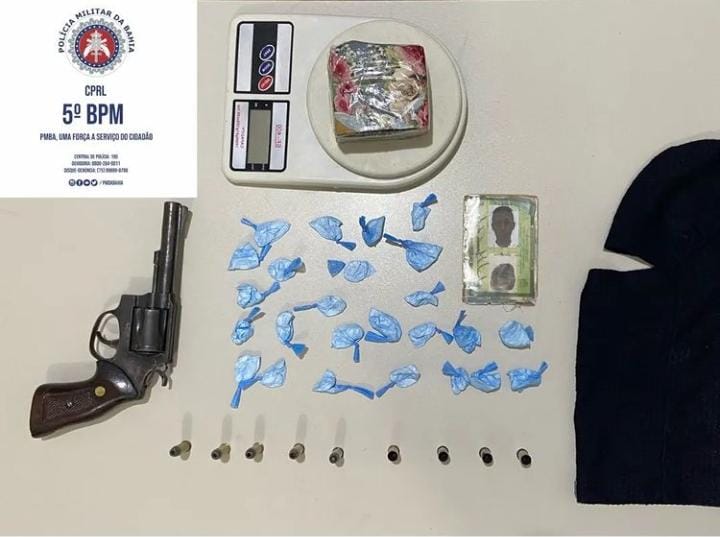 Na investida policial foram apreendidos: 01 revólver calibre 38mm; 05 projéteis intactos e 04 deflagrados; aproximadamente 200g de uma substância semelhante à maconha; 27 papelotes de uma substância semelhante à cocaína; 01 balança de precisão; e 01 brucutu.