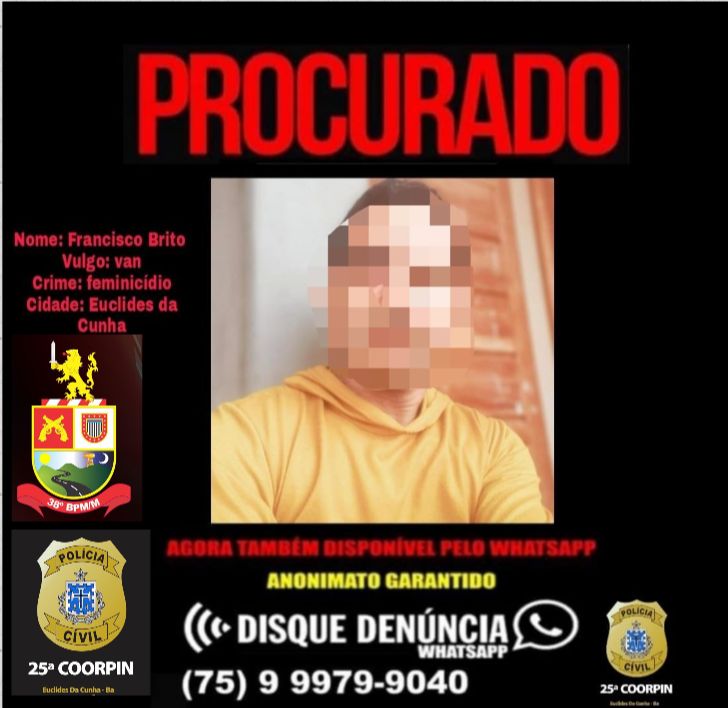 Após investigações realizadas pelo Serviço de Inteligência (SI) da Delegacia de Euclides da Cunha – BA em conjunto com a força tática da Polícia Militar de São Paulo do 38° BPM, o femicidada foi localizado e preso nesta terça-feira (28), no bairro Iguatemi, São Paulo/SP. O acusado foi apresentado na 49° delegacia de São Mateus em São Paulo para adoção das medidas cabíveis.