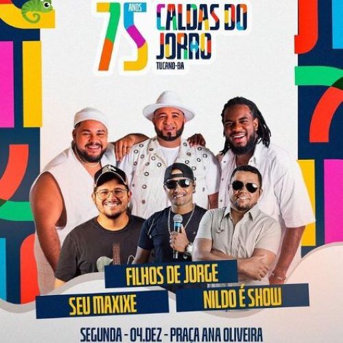 A prefeitura municipal de Tucano divulgou neste domingo (3) as atrações que irão fazer os 75 anos de Caldas do Jorro se tornarem inesquecíveis com as apresentações de Seu Maxixe, Nildo é show e Filhos de Jorge.