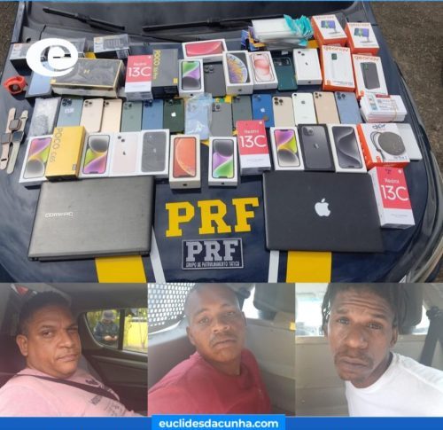 Em uma ação conjunta entre a Polícia Civil de Euclides da Cunha e a Polícia Rodoviária Federal (PRF), todos os aparelhos celulares e eletrônicos furtados da loja de revenda de celulares, localizada na Avenida Ruy Barbosa, foram recuperados e três homens foram presos na cidade de Simões Filho, Bahia.