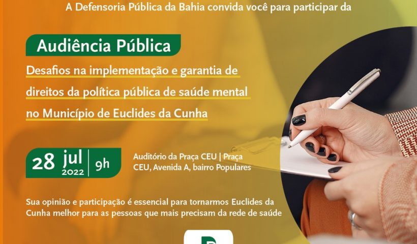 Audiência pública vai discutir políticas de saúde mental em Euclides da Cunha